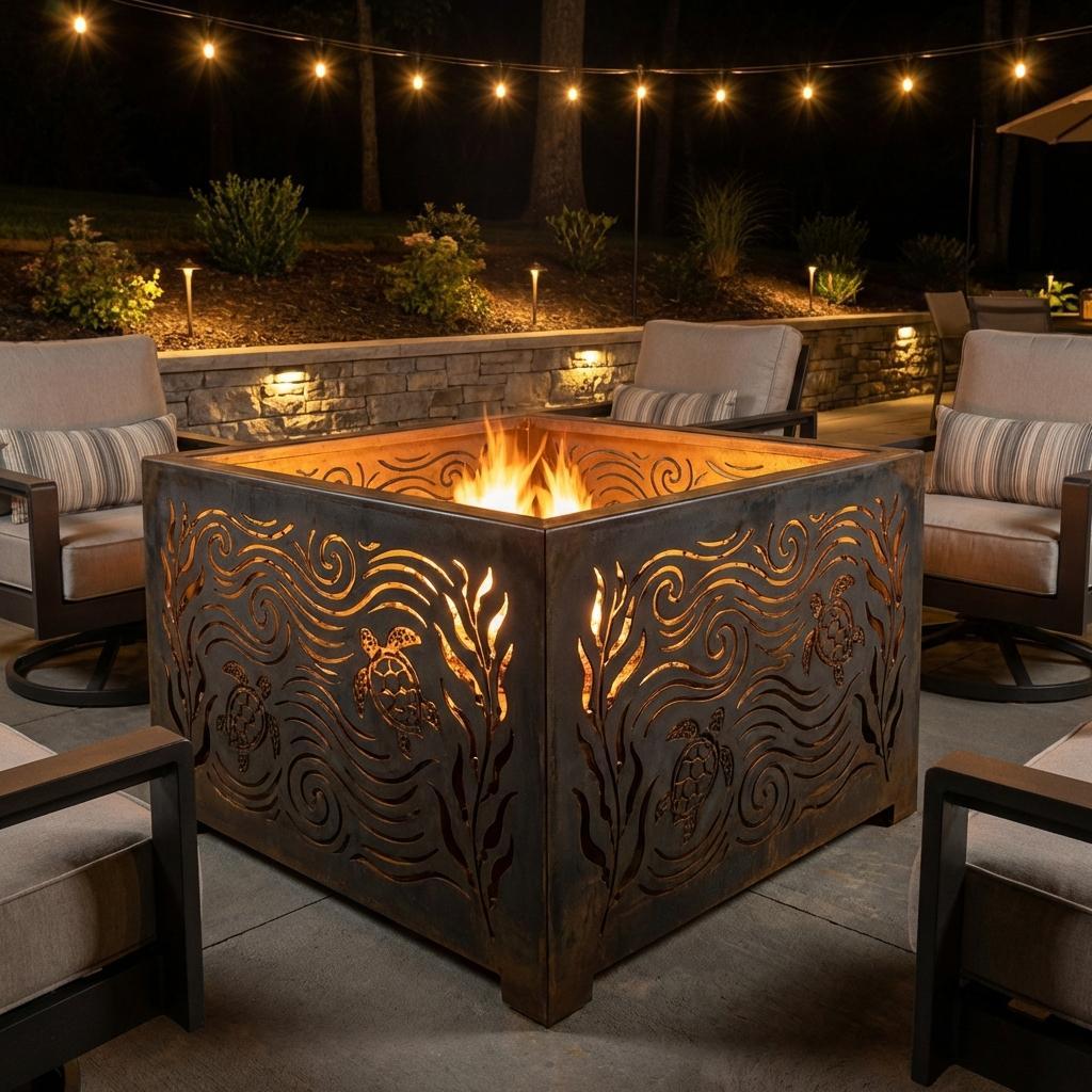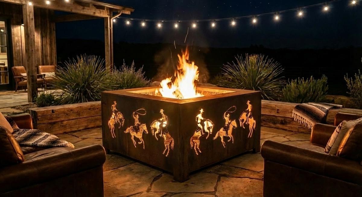 The true appeal of our fire pits lies in their infinite customization options. Because we utilize advanced CNC plasma cutting technology, the sides of your fire pit act as a blank canvas. Popular requests include sprawling forest silhouettes, detailed wildlife scenes, and custom ranch themes with horses and longhorns.