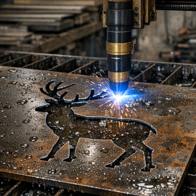 Gather around a customized steel fire pit. We design and plasma cut heavy-duty metal fire rings featuring your family name, ranch logo, or intricate wildlife scenes.