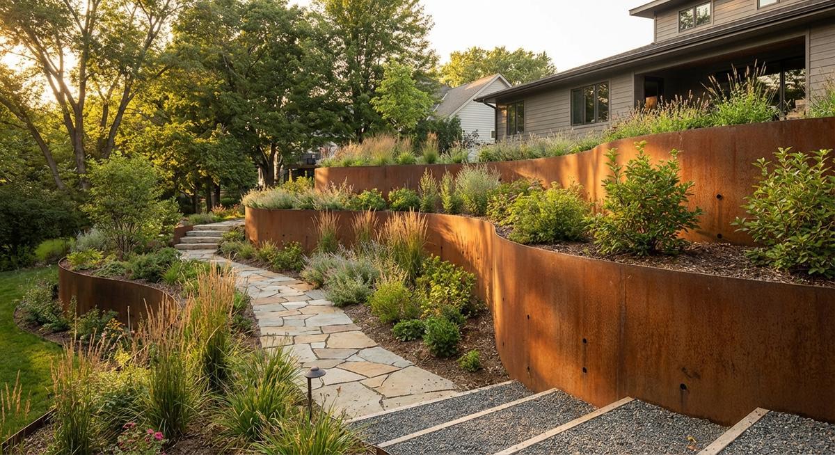 Weathering steel develops a stunning, protective rust patina over time—zero maintenance with a rich, earthy aesthetic.