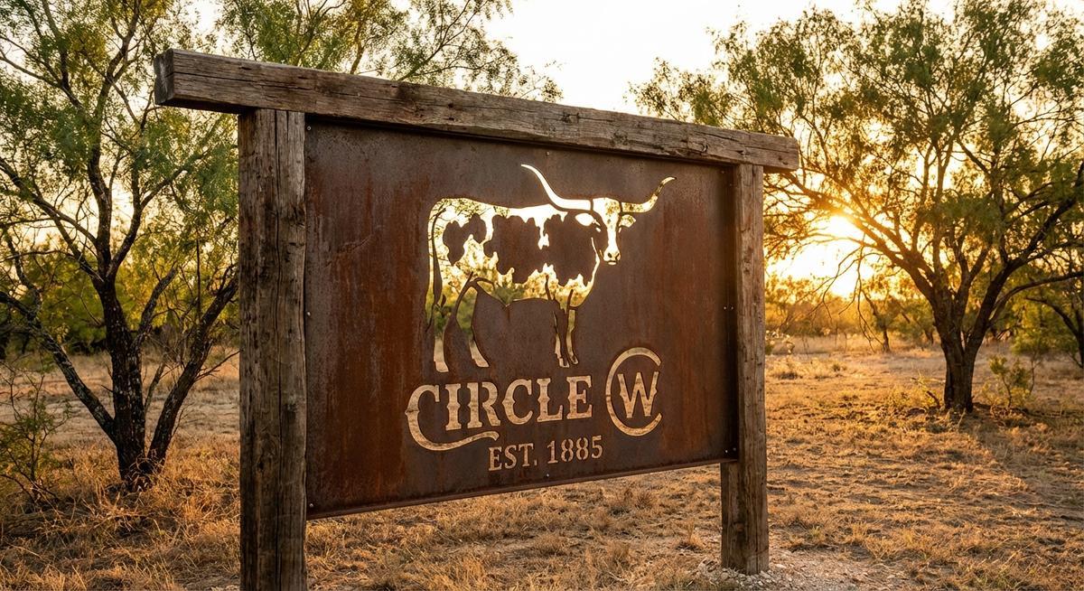 Ranch signs and overhead gate structures are a specialty of ours. Texas ranches require signage that reflects heritage and scale. We regularly design and fabricate expansive entrance signs spanning 10 to 20 feet wide, incorporating intricate scenes of wildlife, livestock brands, and sweeping landscapes.
